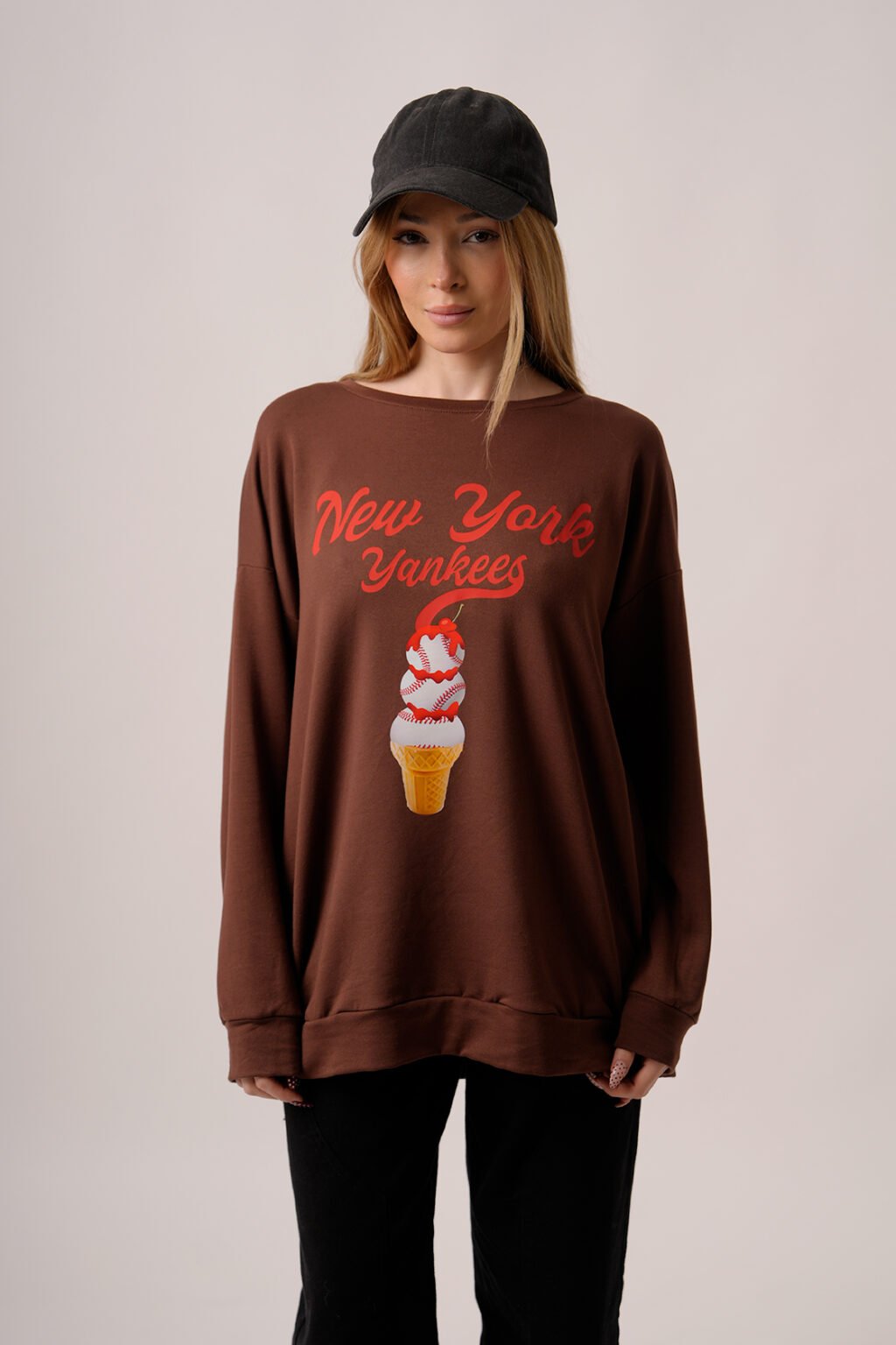 Maxibuzo Rustico Frizado Cuello Redondo Estampa New York Yankees