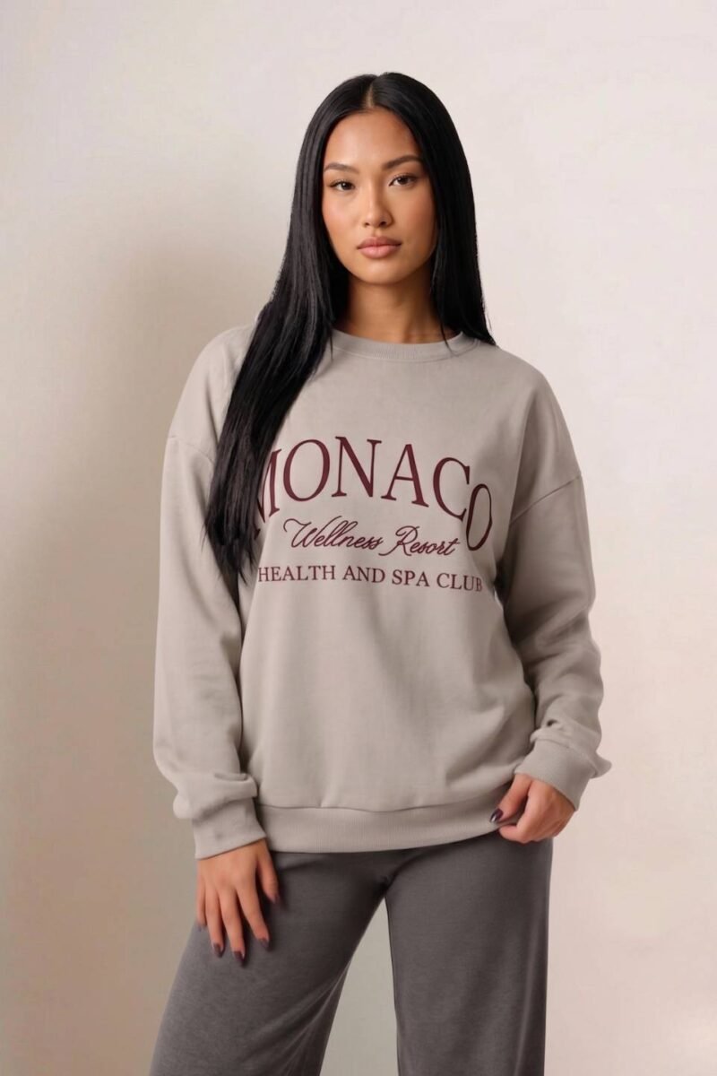 Maxibuzo Rustico Frisado Cuello Redondo Estampa «CROISSANT»