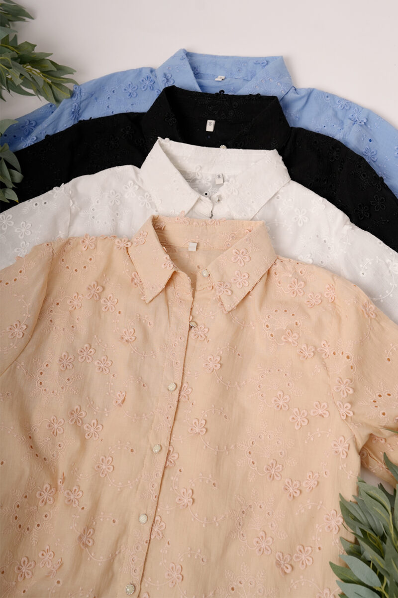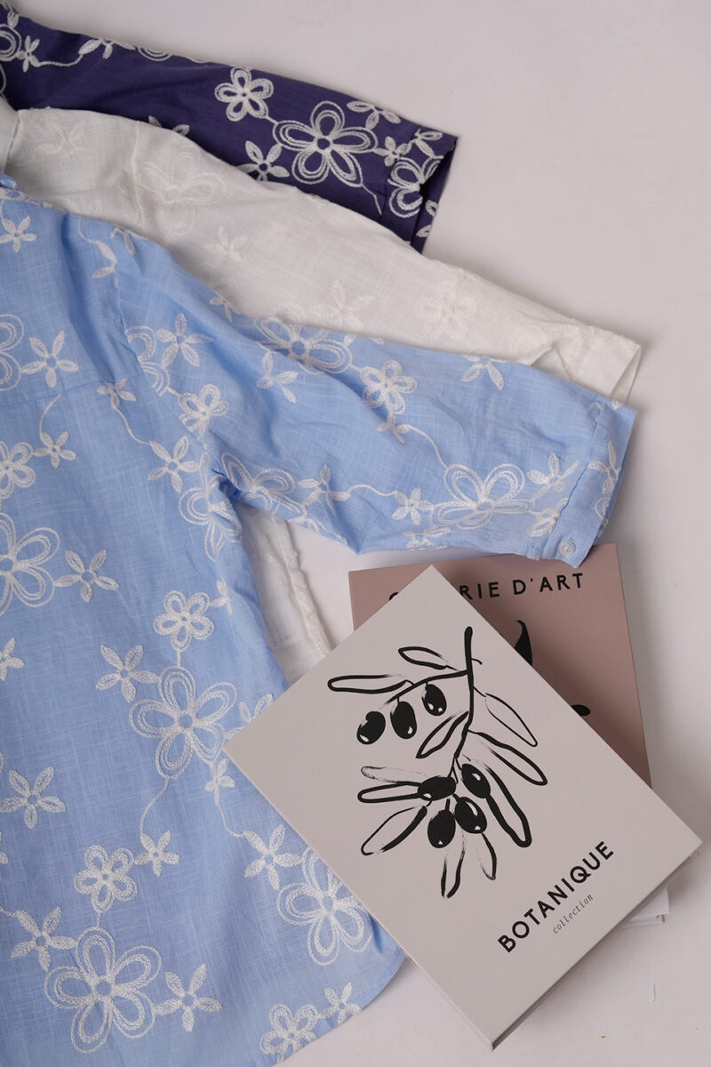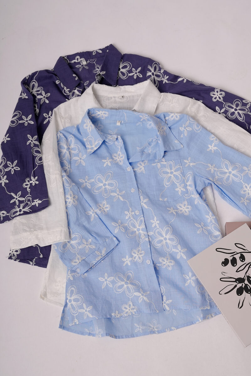Camisa Importada Lino Broderie Manga 3/4 Smart