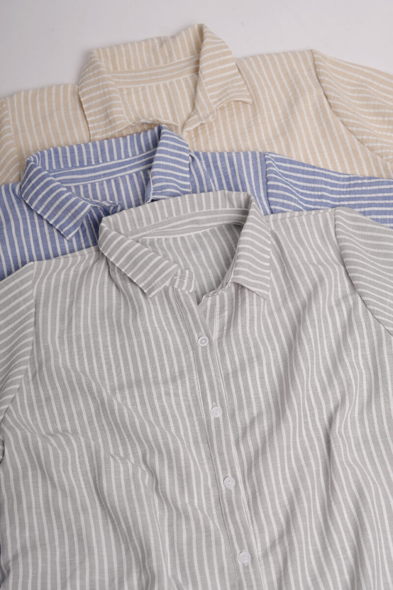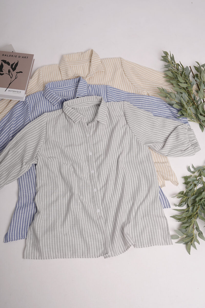 Camisa Larga Lino Rayado Manga Fruncida Viany
