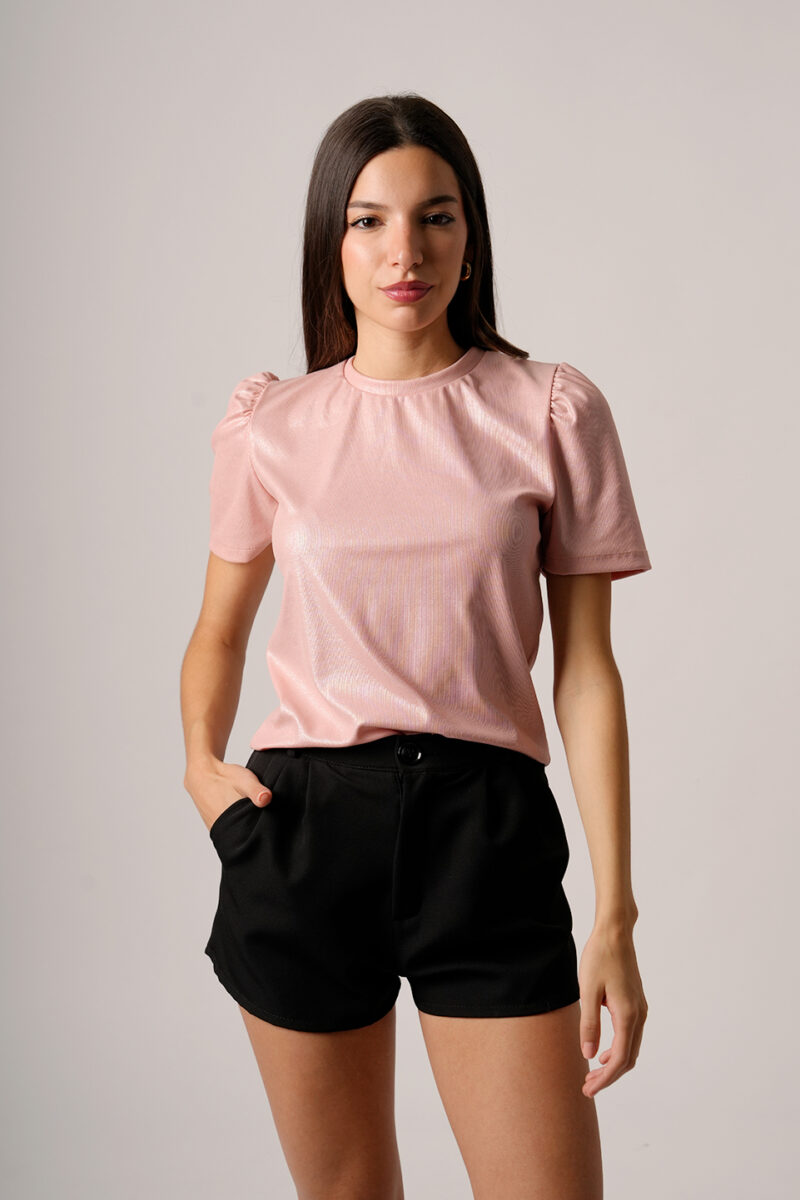 Remera Manga Corta Morley Foil Brilloso Con Moño Atras Mura