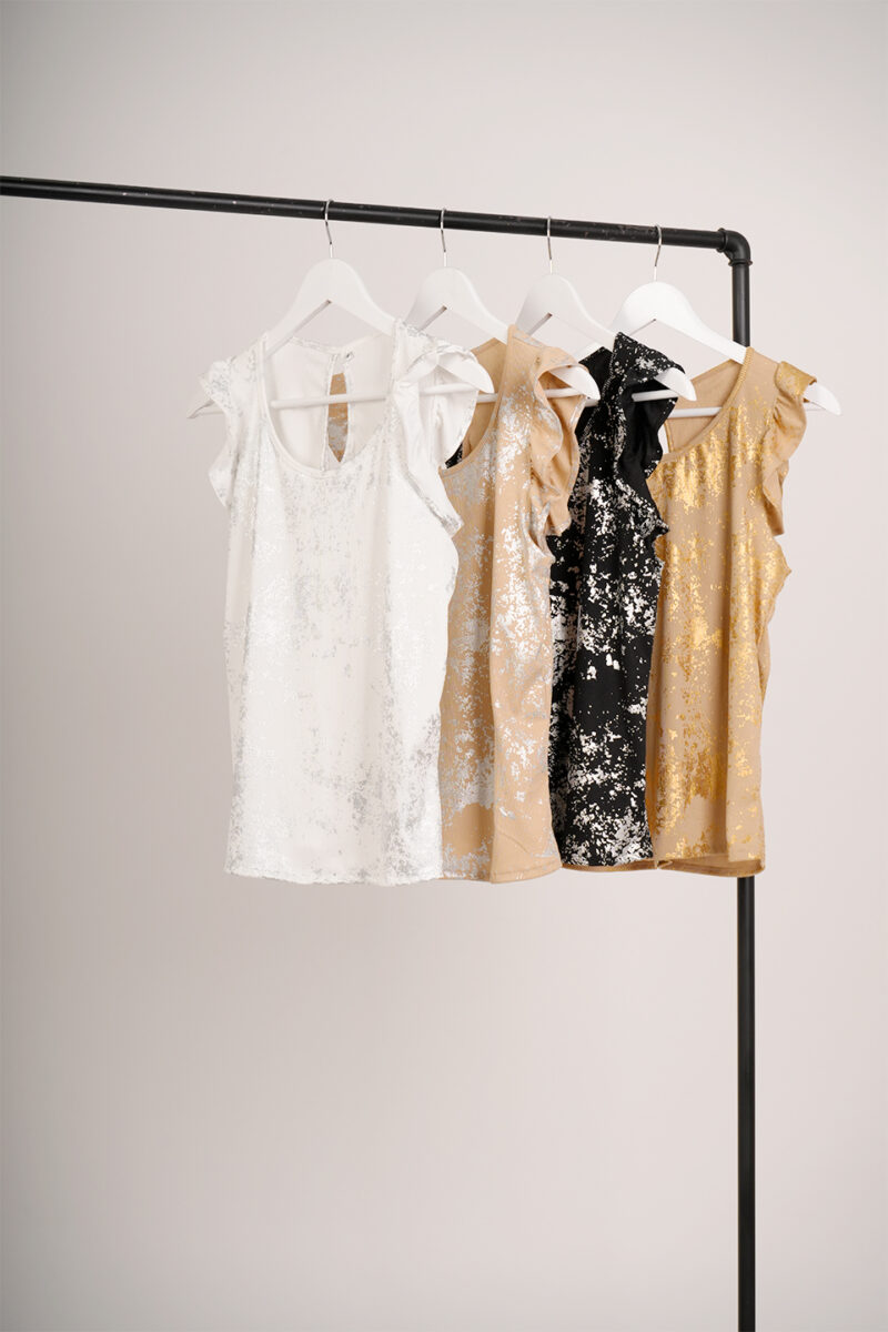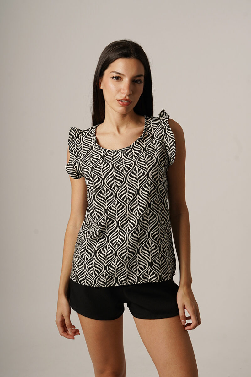 Musculosa Con Gota Y Manga Volado Cey Premium Estampado Hojas Salma