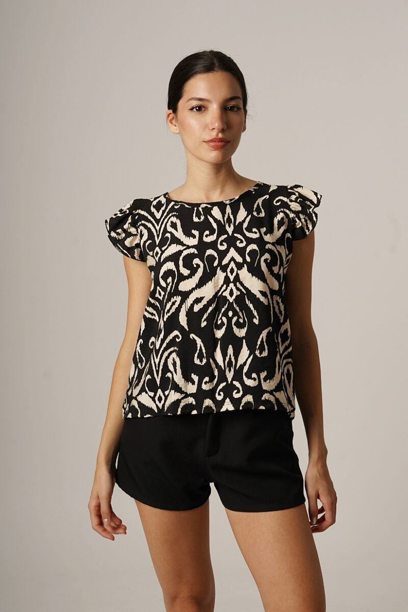 Musculosa Cey Premium Estampado Para Atar Atras Y Manga Volado Gloda