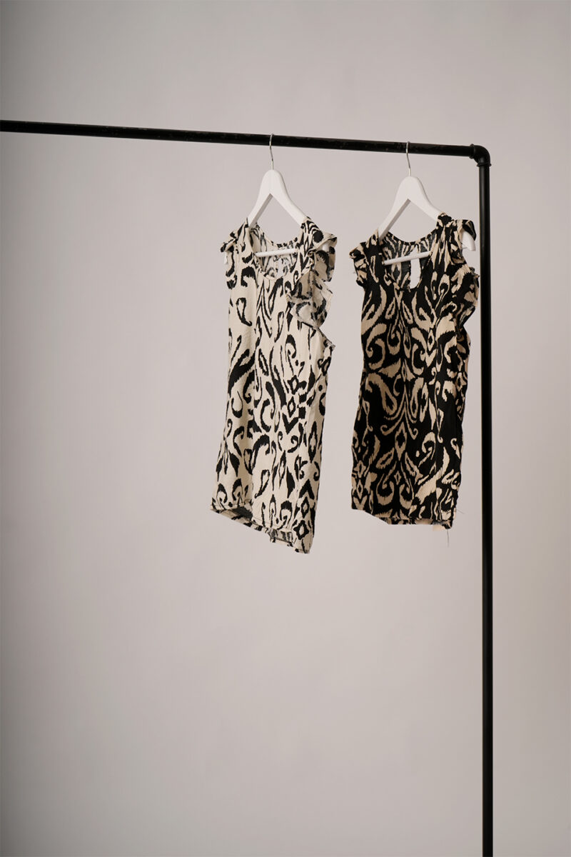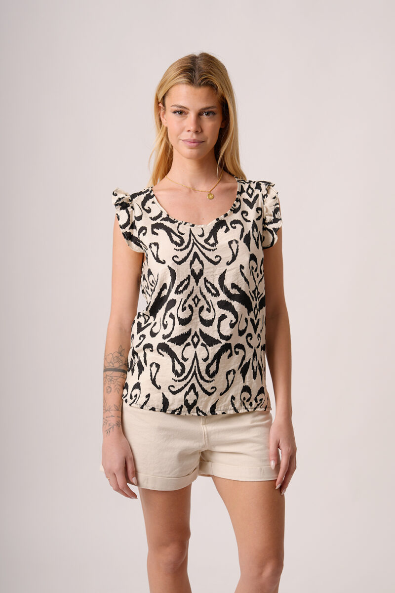 Musculosa Cey Premium Estampado Para Atar Atras Y Manga Volado Cachi