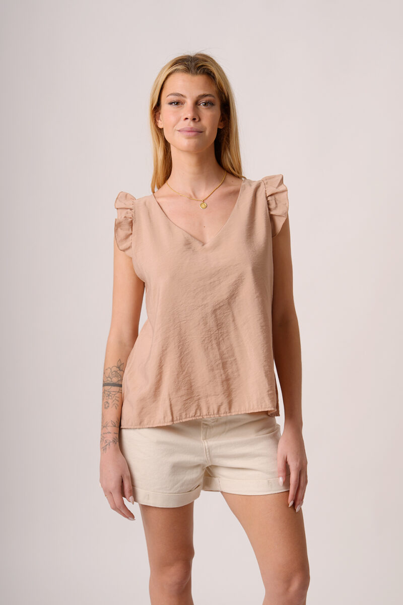 Musculosa Cey Premium Liso Para Atar Atras Y Manga Volado Gela