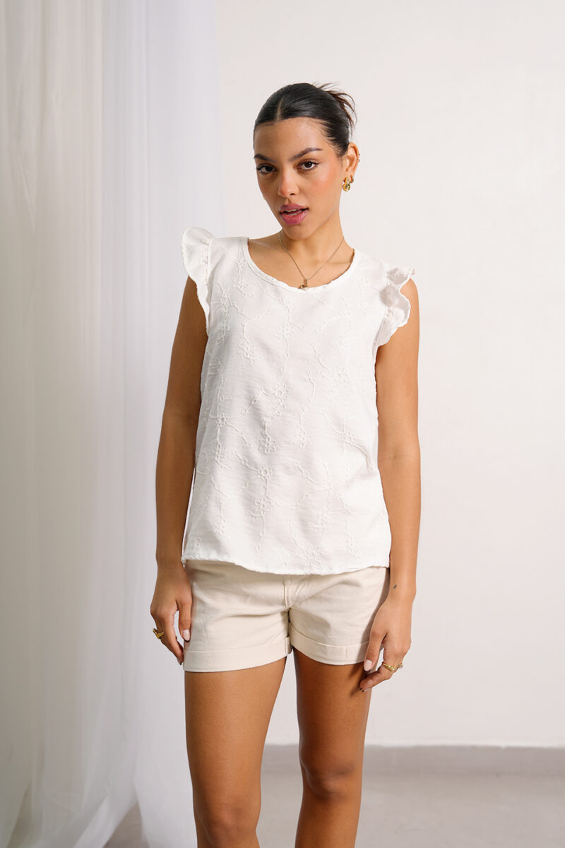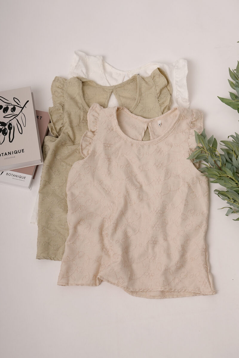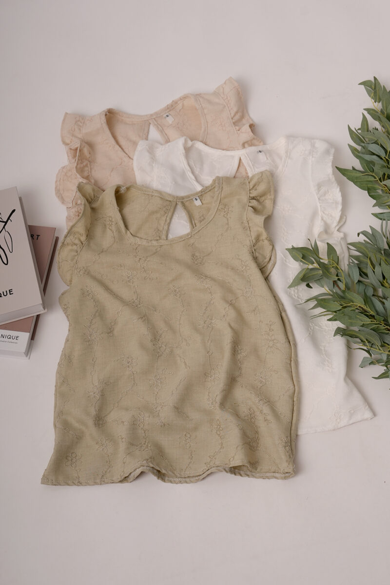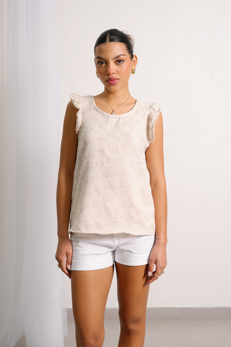 Musculosa Con Gota Tela Lino Twill Broderie Kalia