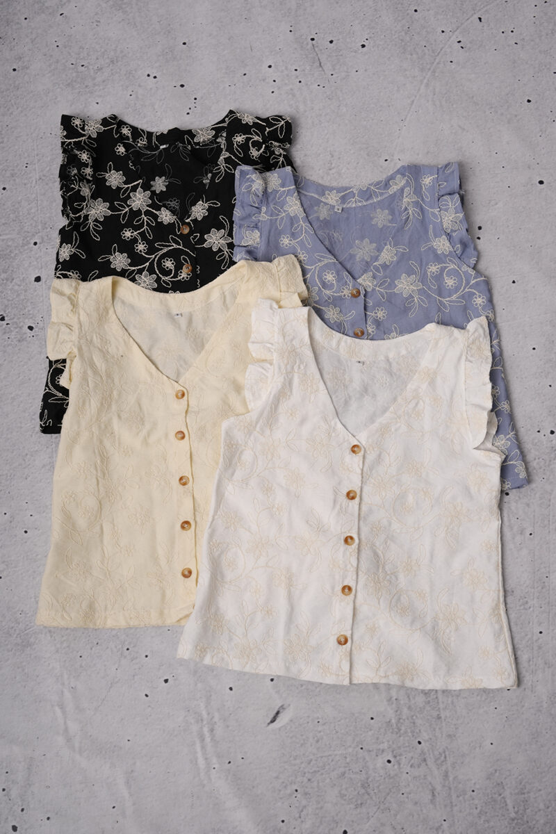 Musculosa Volado Con Botones Lino Broderie Hana