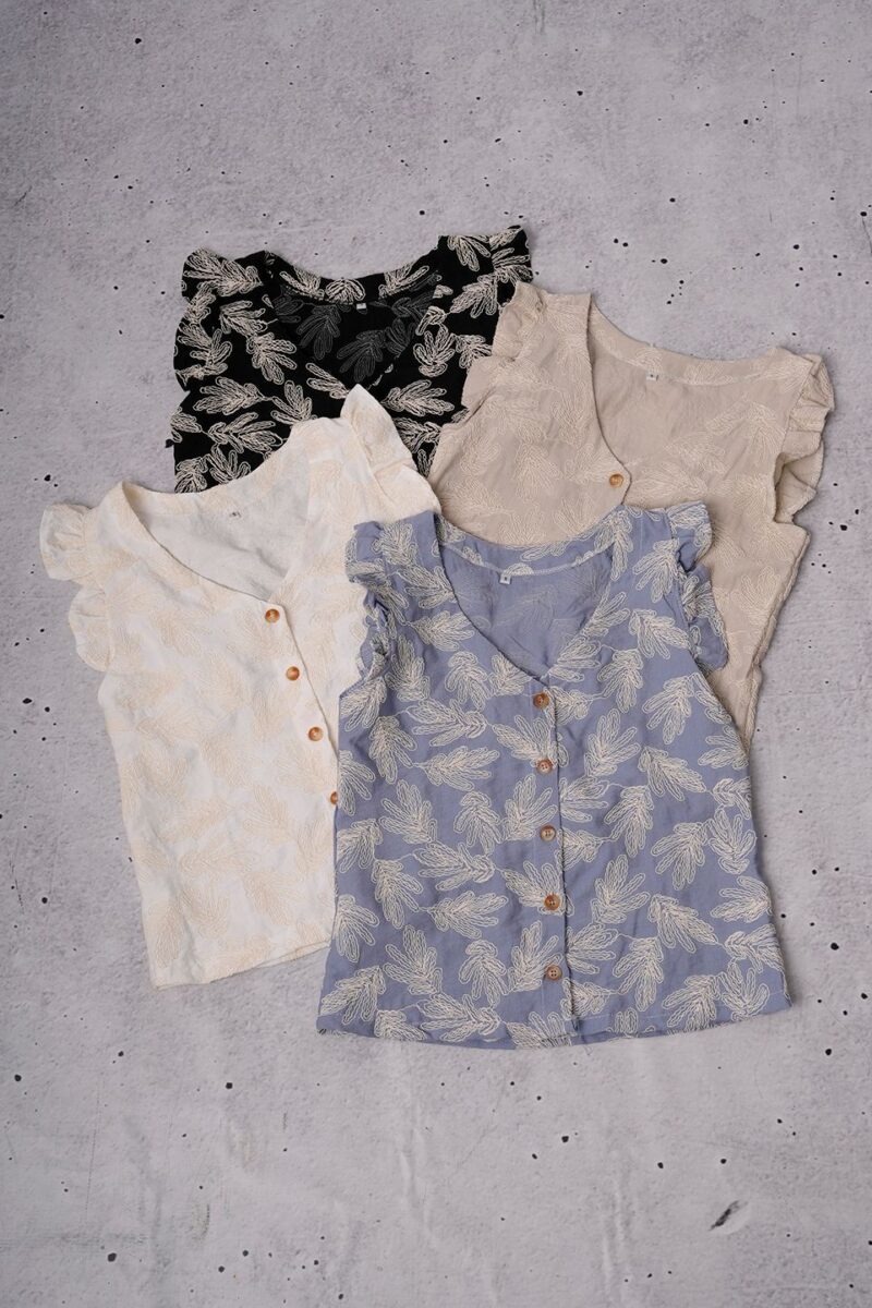 Musculosa Volado Con Botones Lino Broderie Camelia