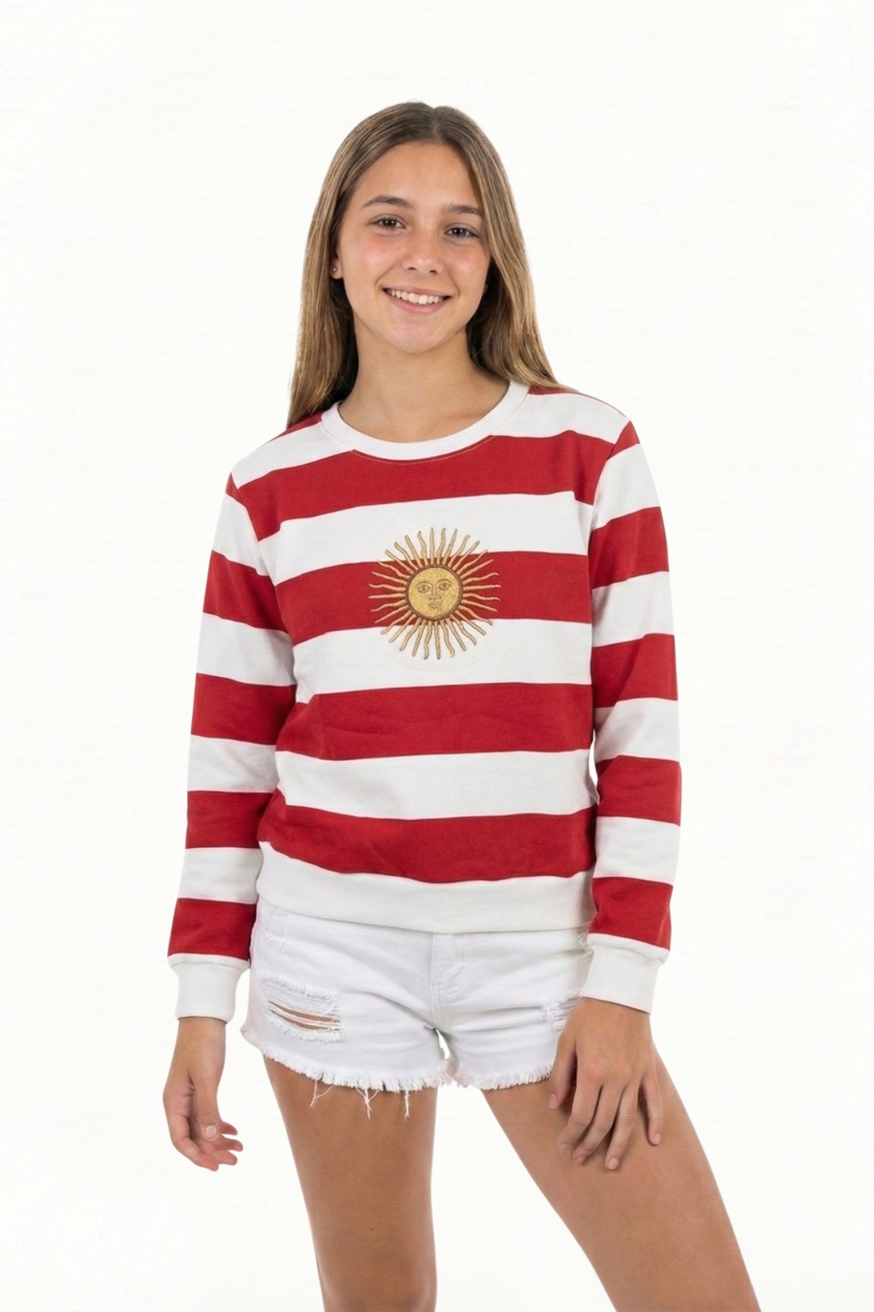 Buzo Adolescente Frisa Carcada Cuello Redondo Rayado Sol De Mayo Bordado «KASIA»