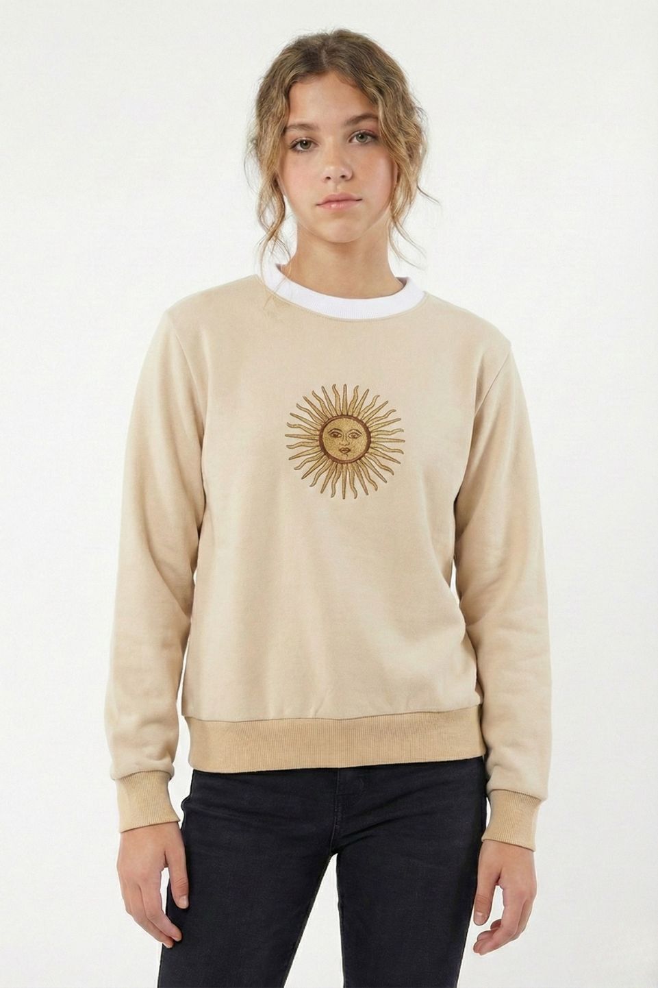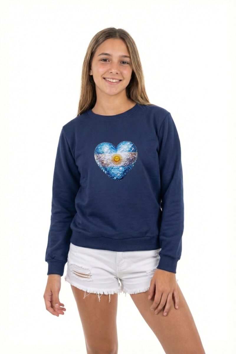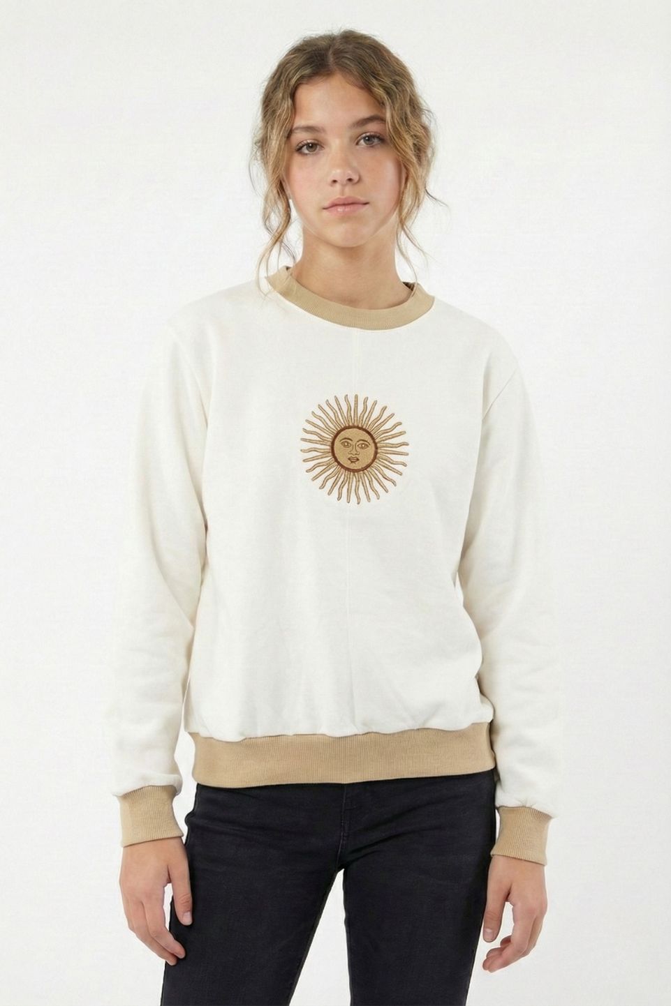 BUZO ADOLESCENTE RUSTICO CUELLO Y PUÑO COMBINADO CON SOL DE MAYO BORDADO 1
