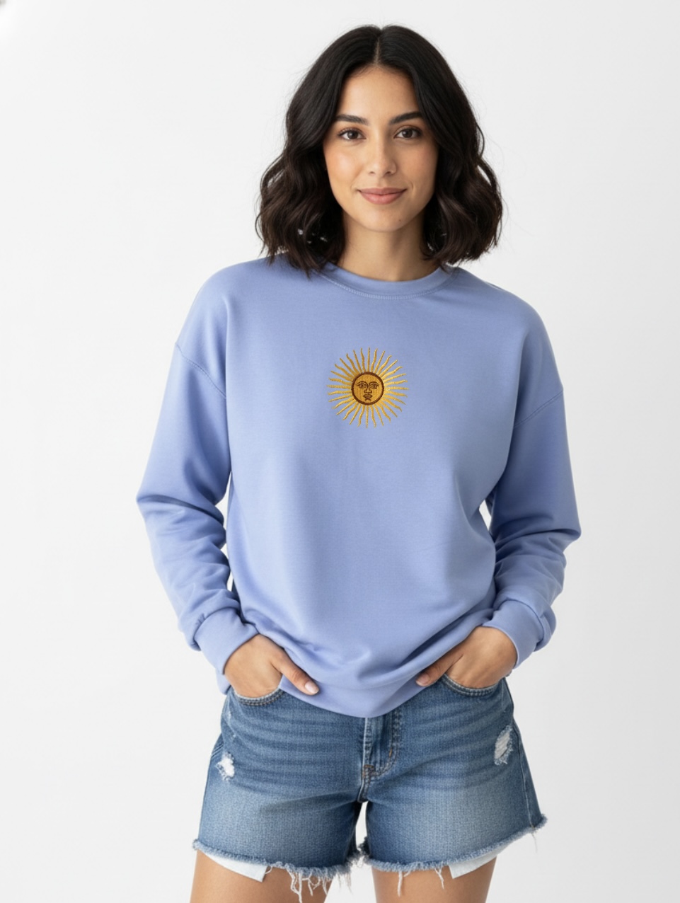 Buzo Rustico Lycra Cuello Redondo Sol De Mayo Argentina Bordado Aires