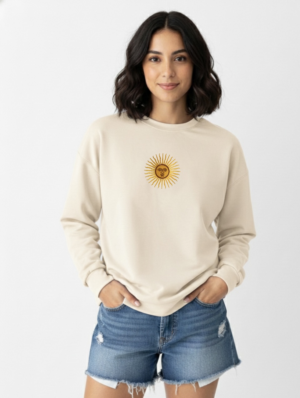 BUZO RUSTICO LYCRA CUELLO REDONDO SOL BORDADO