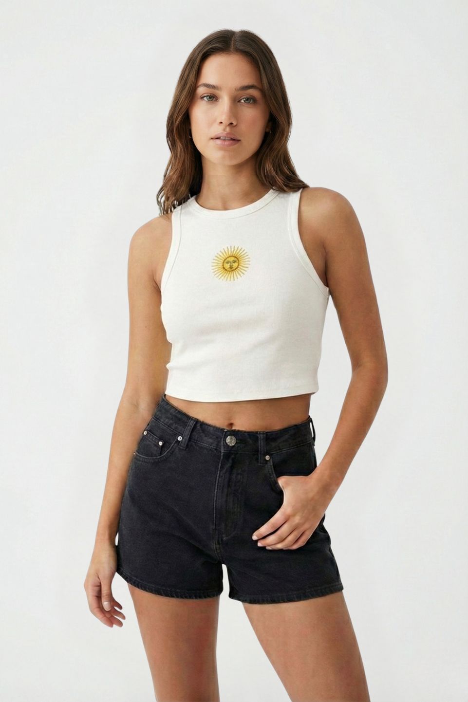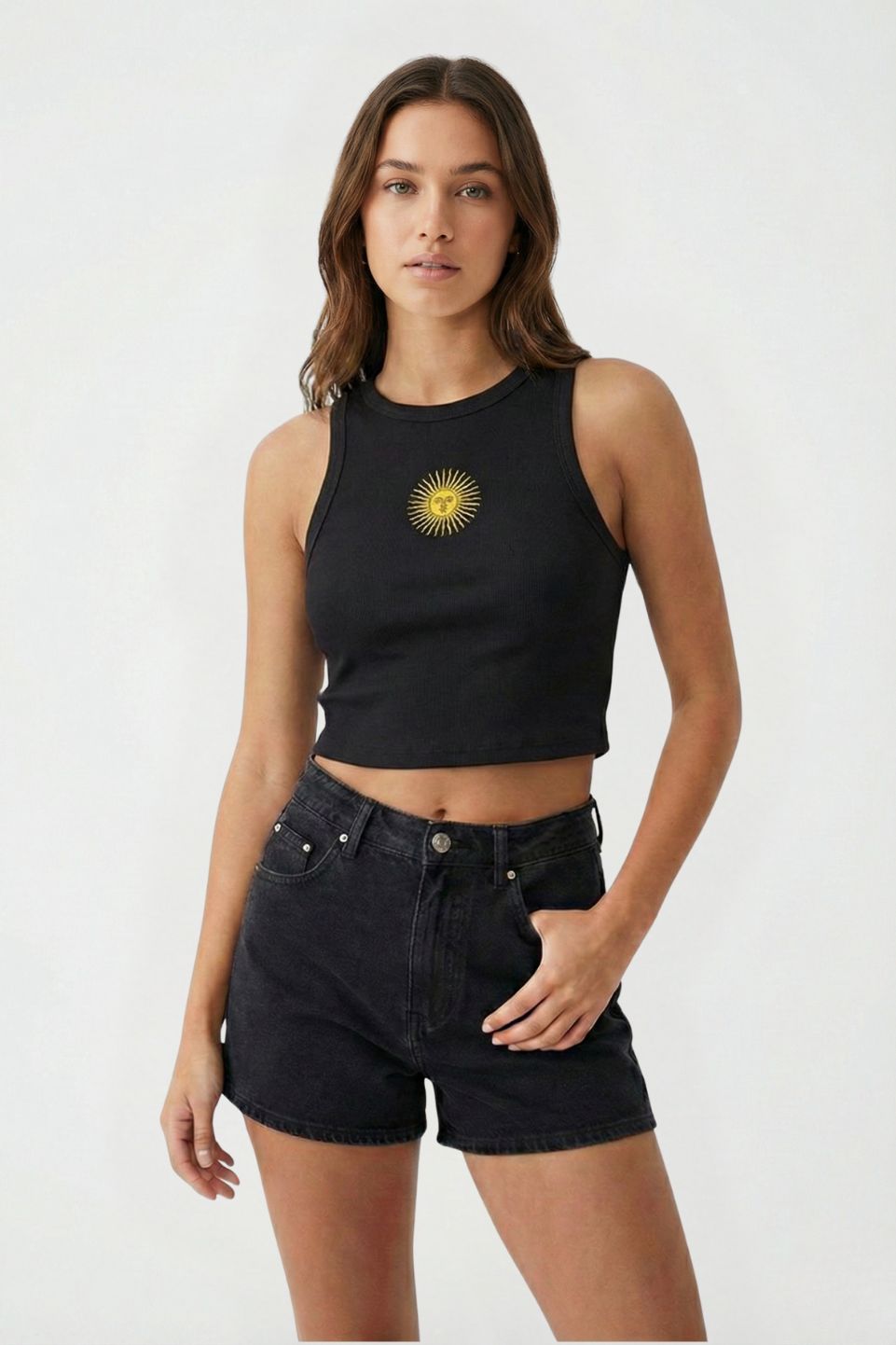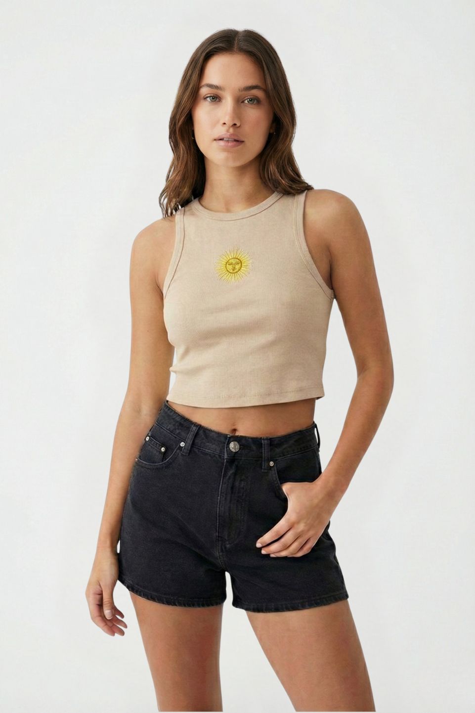 Top Basico Ribb Sol De Mayo Bordado En El Medio «LISETTE»