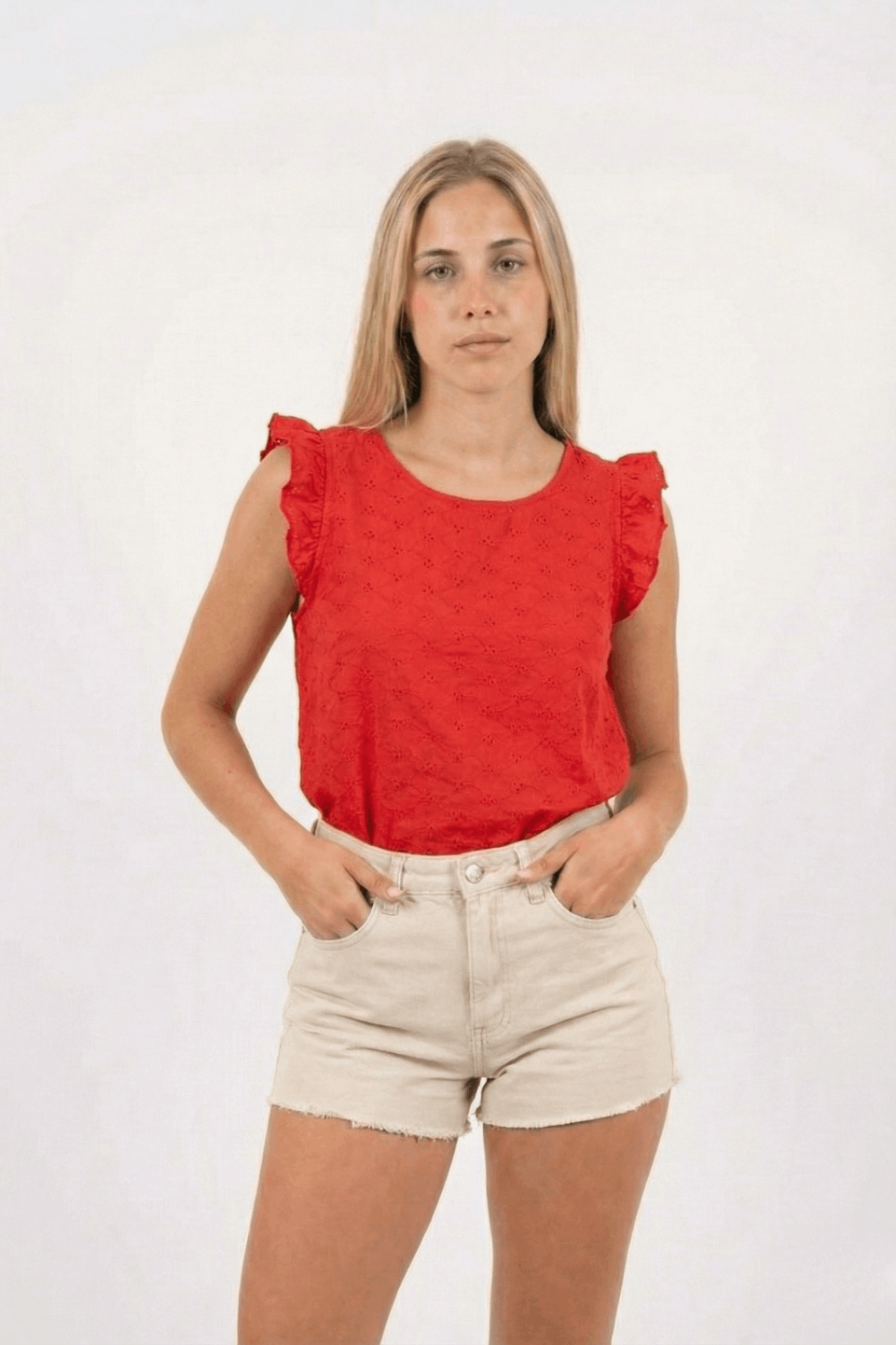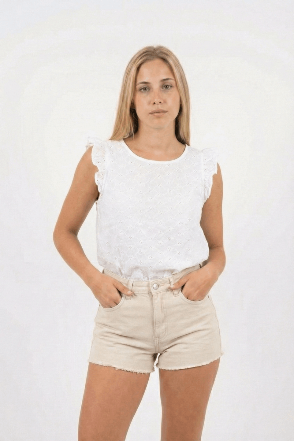 MUSCULOSA CON GOTA BRODERIE PLANO flor con ondas S-M-L-XL
