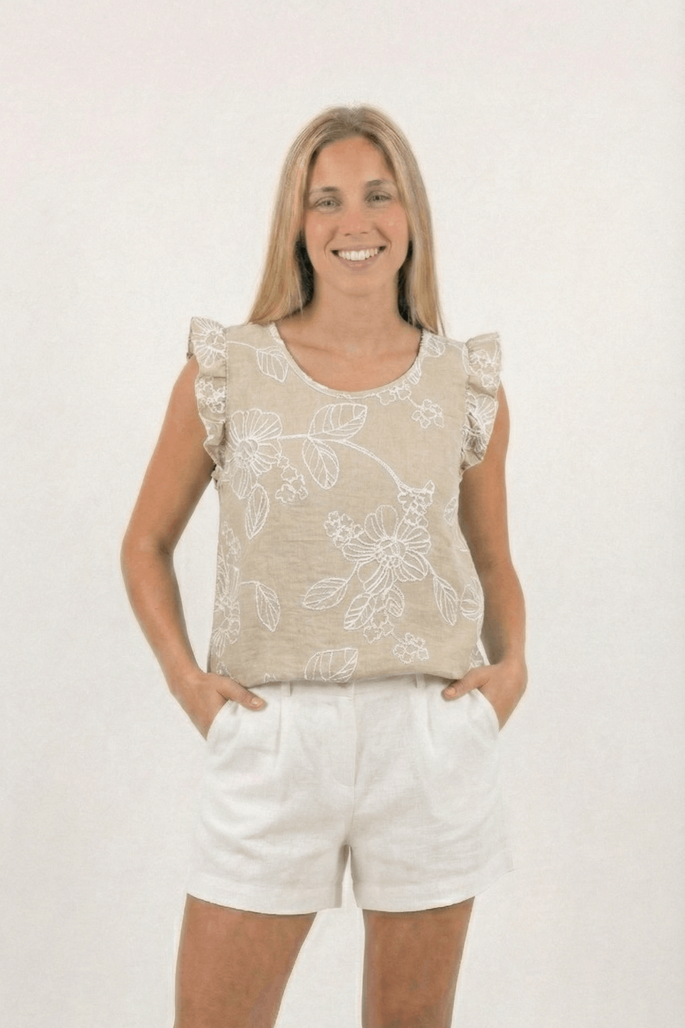 Musculosa Gota Lino Broderie Tony