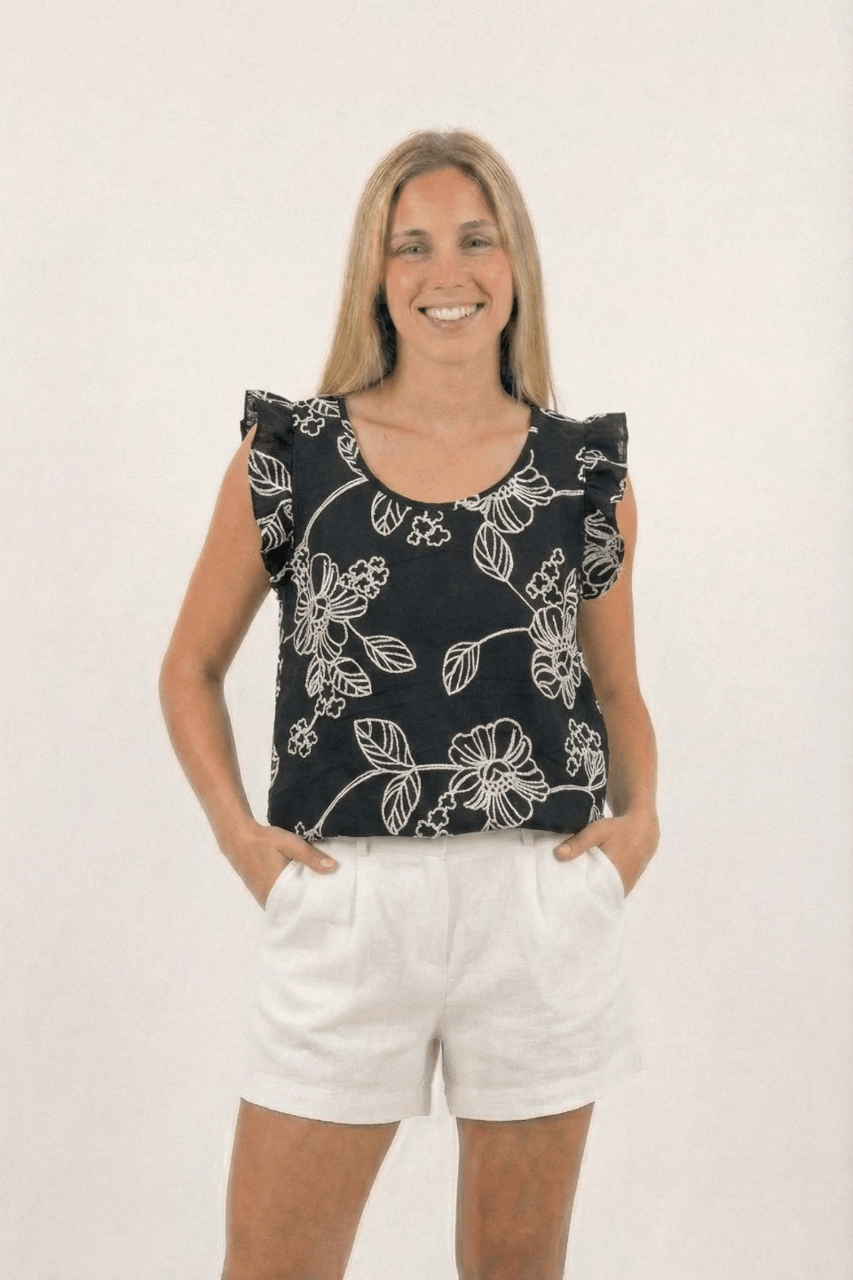 MUSCULOSA GOTA LINO BRODERIE flor grande con tallo S-M-L-XL