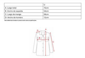 | Color | Camel, Celeste, Crema, Dulce de Leche, Naranja, Negro, Rojo, Rosa, Verde |
