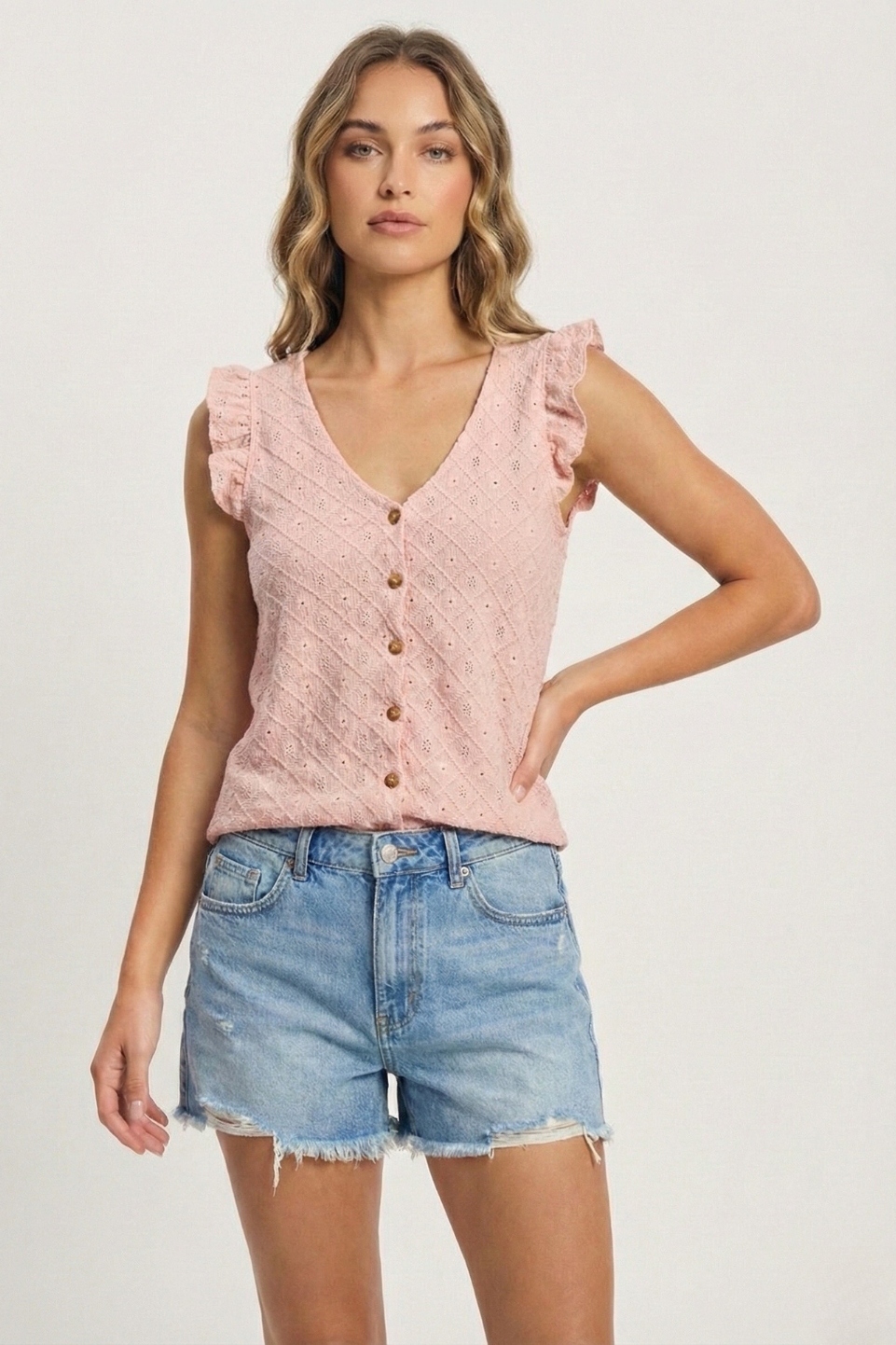 Musculosa Volado Con Botones Broderie «BLOOM»