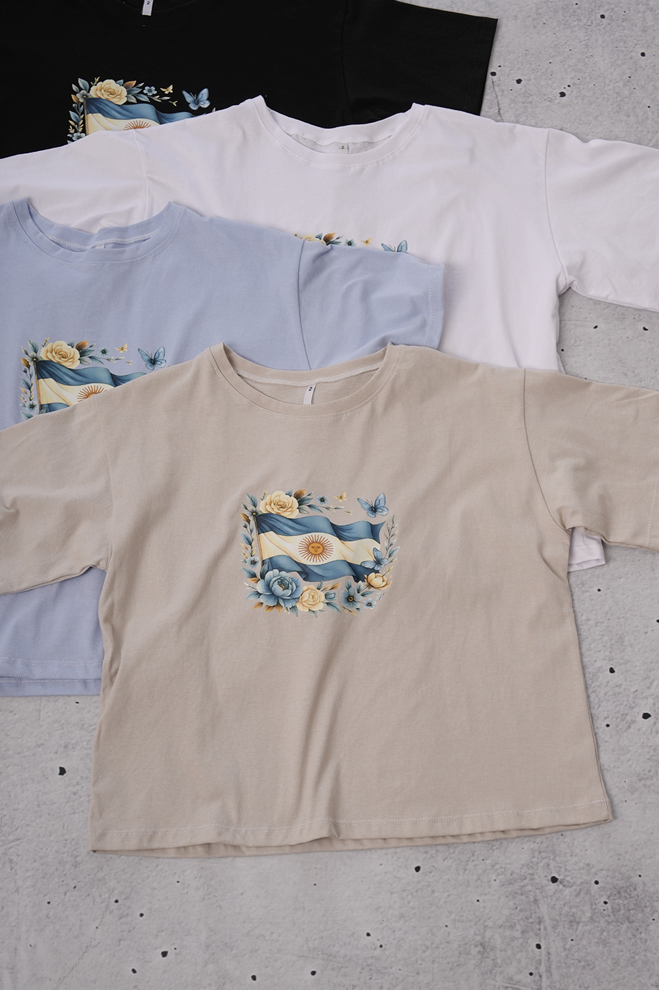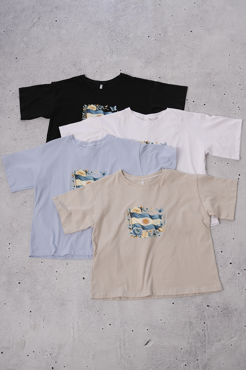 REMERA BOXY JERSEY 2-3-4 BANDERA ARGENTINA FLOREADA EN EL MEDIO EN DTF ANP