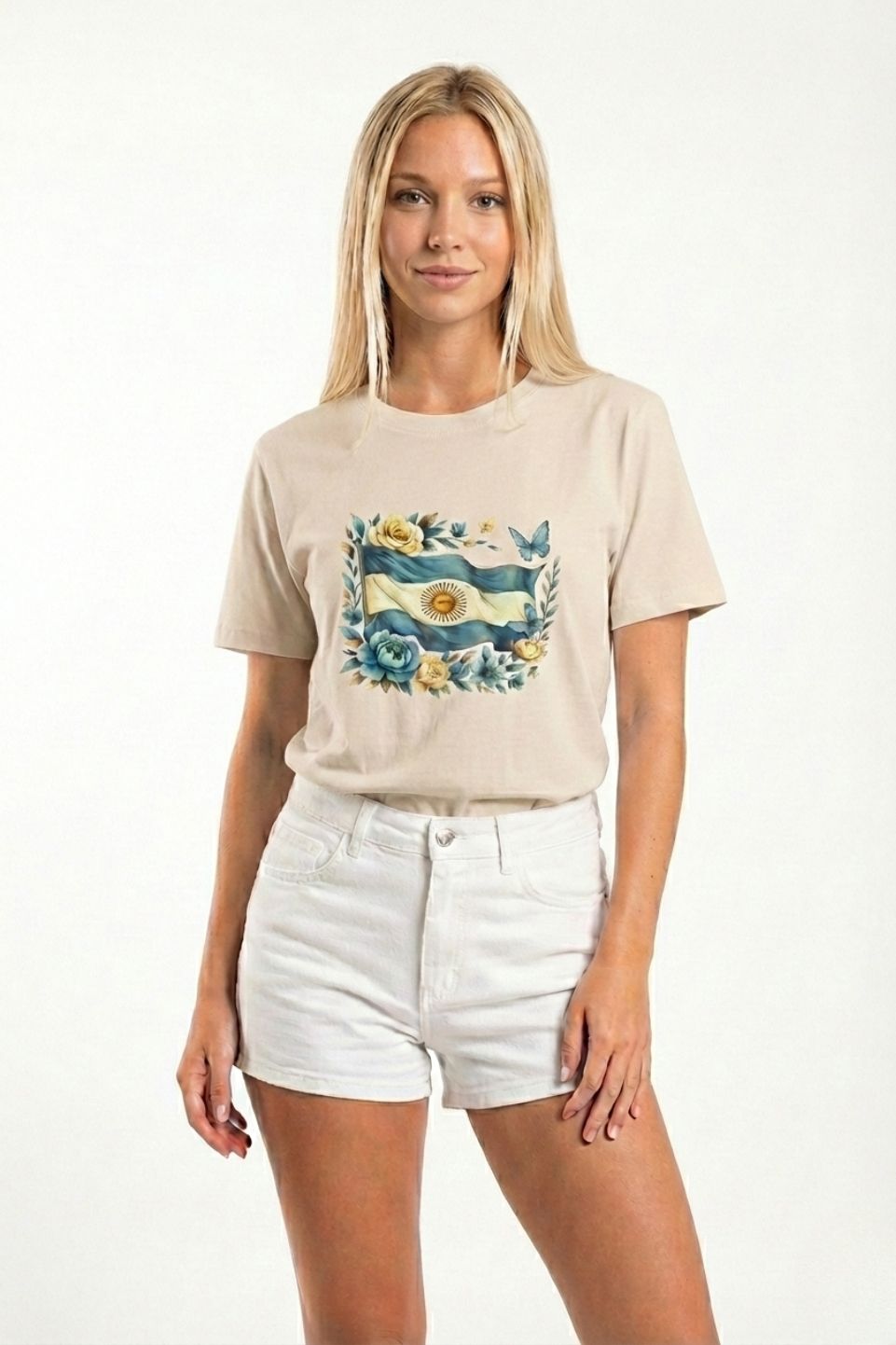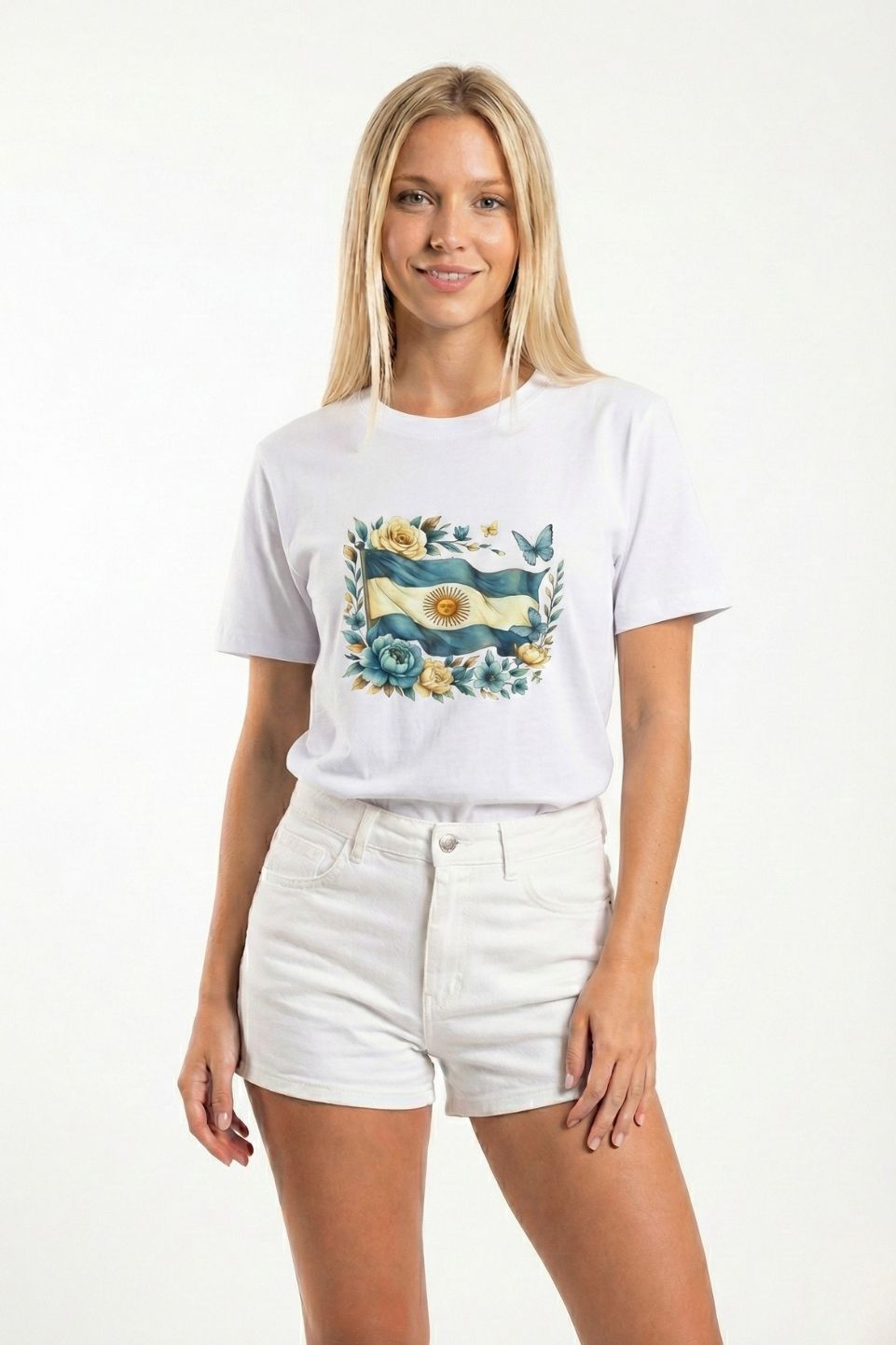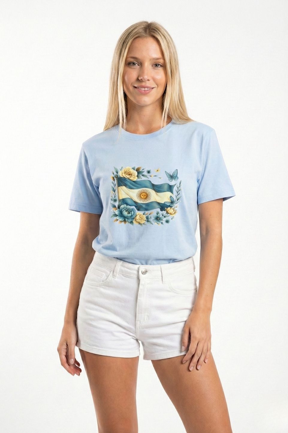 Remera Boxy Algodon Jersey 24/1 Bandera Argentina Floreada Dtf Patria