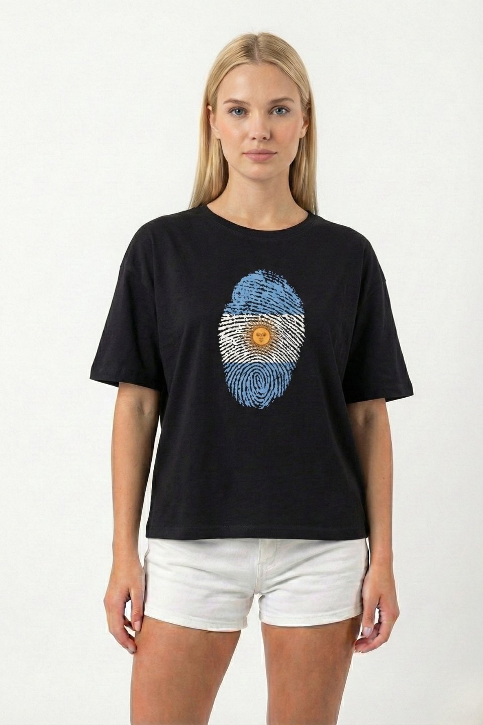 Remera Boxy Algodon Jersey 24/1 Estampa Huella Bandera Argentina «HUELLA»
