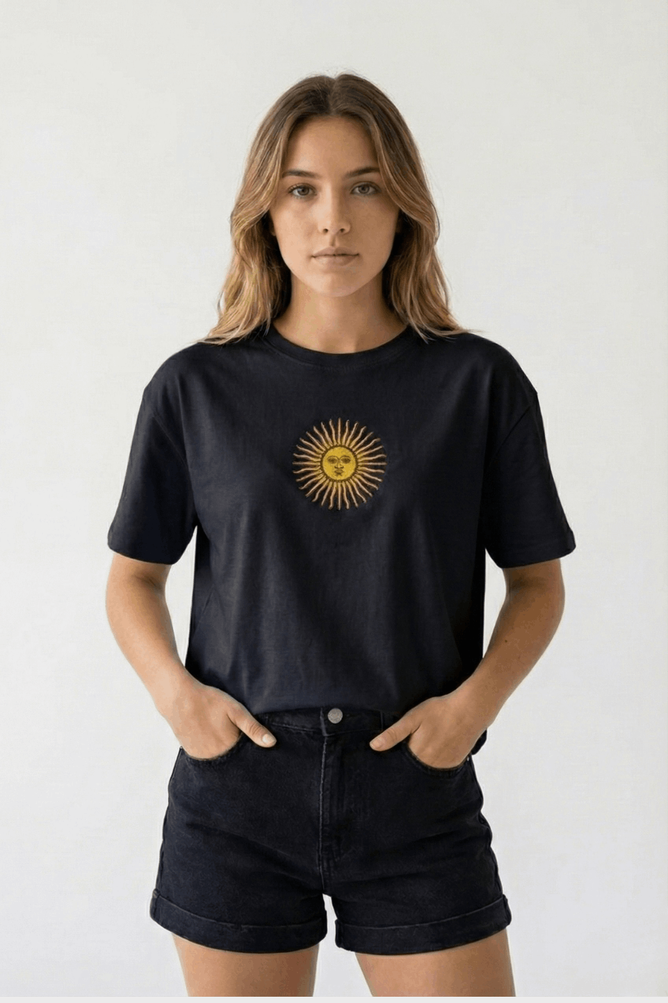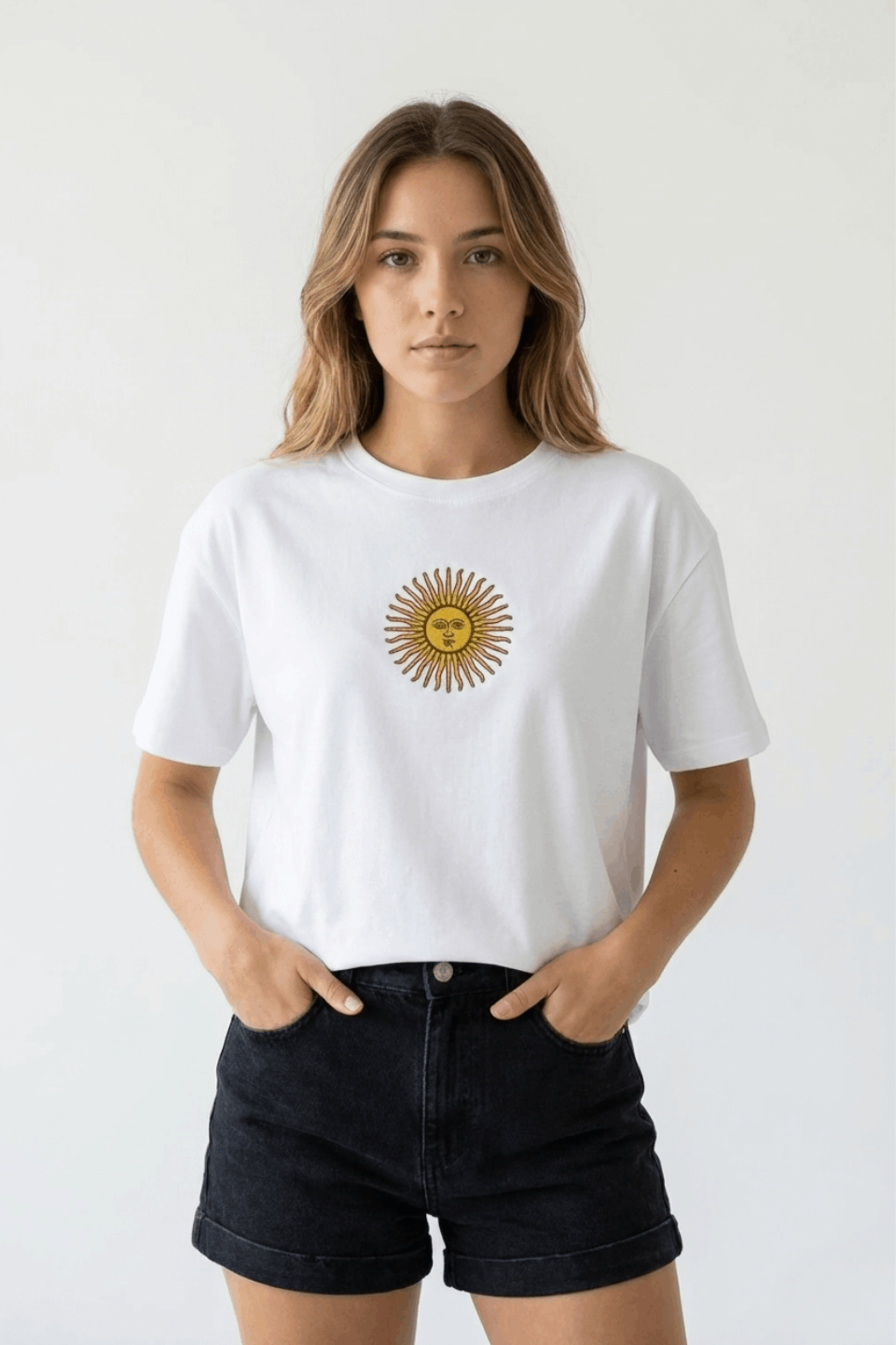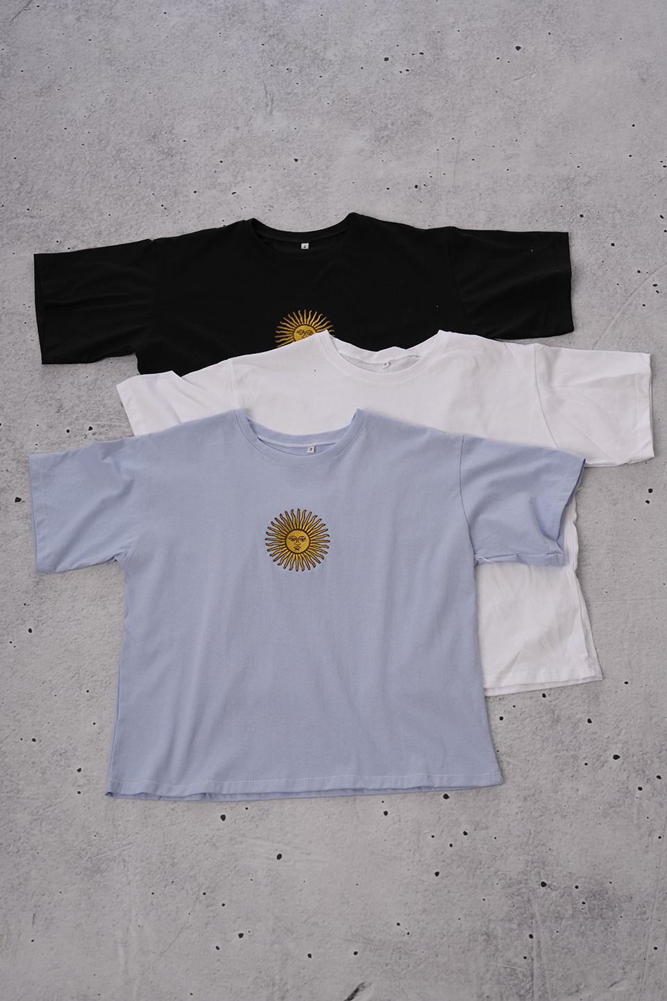 REMERA BOXY JERSEY 2-3-4 SOL DE MAYO EN EL MEDIO BORDADO ANP