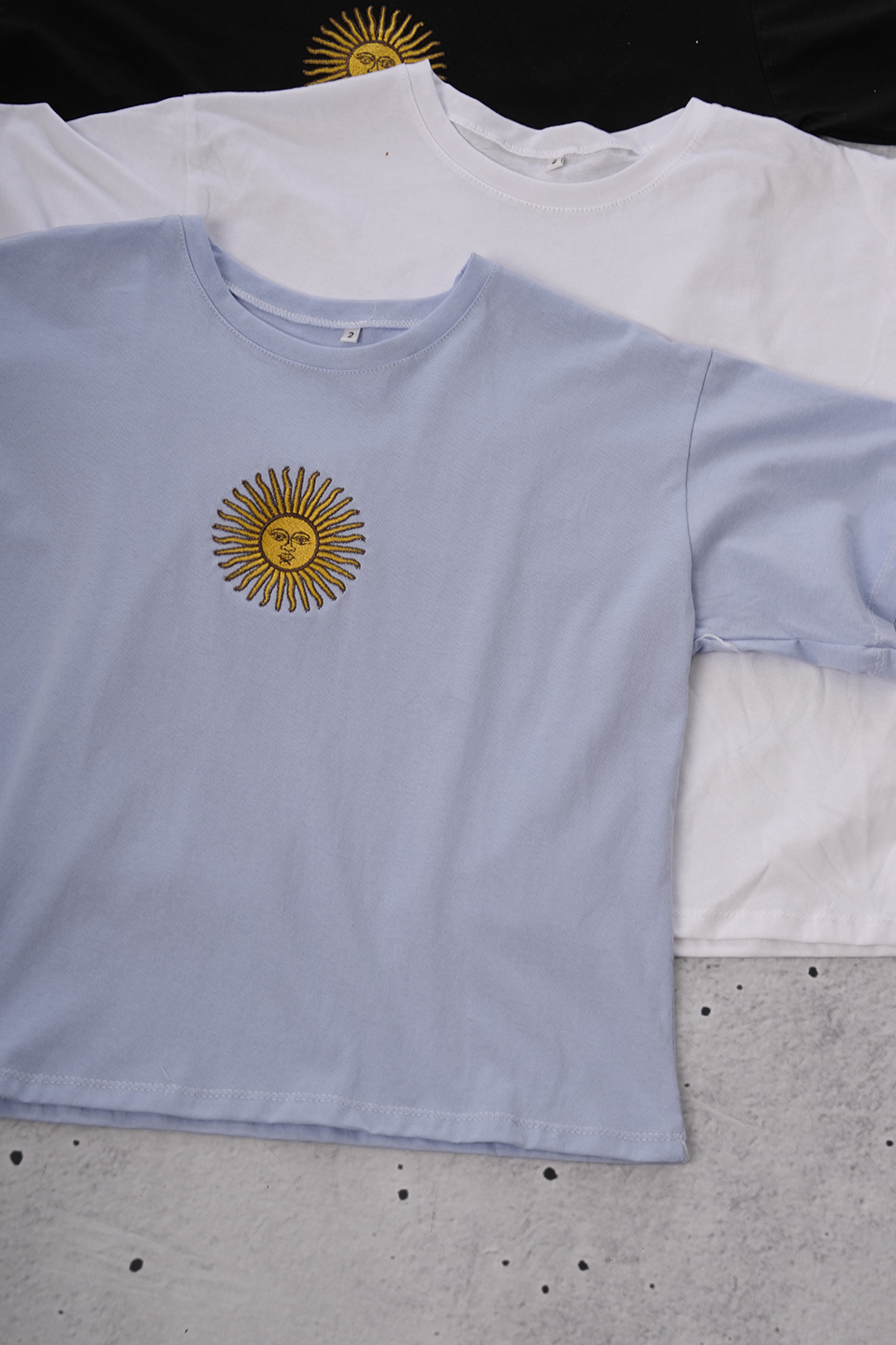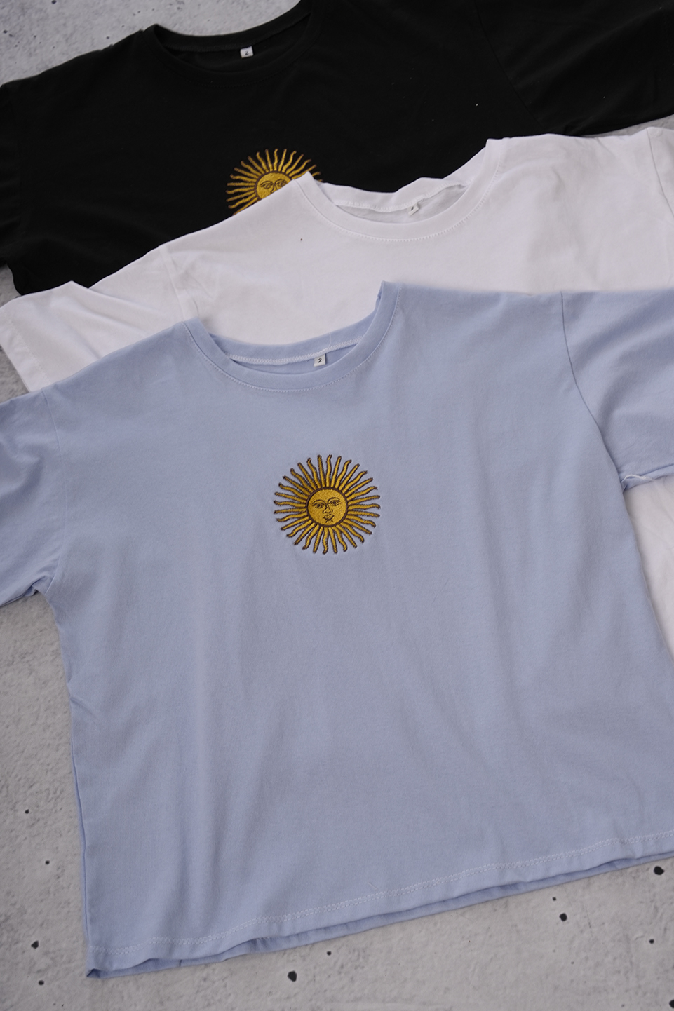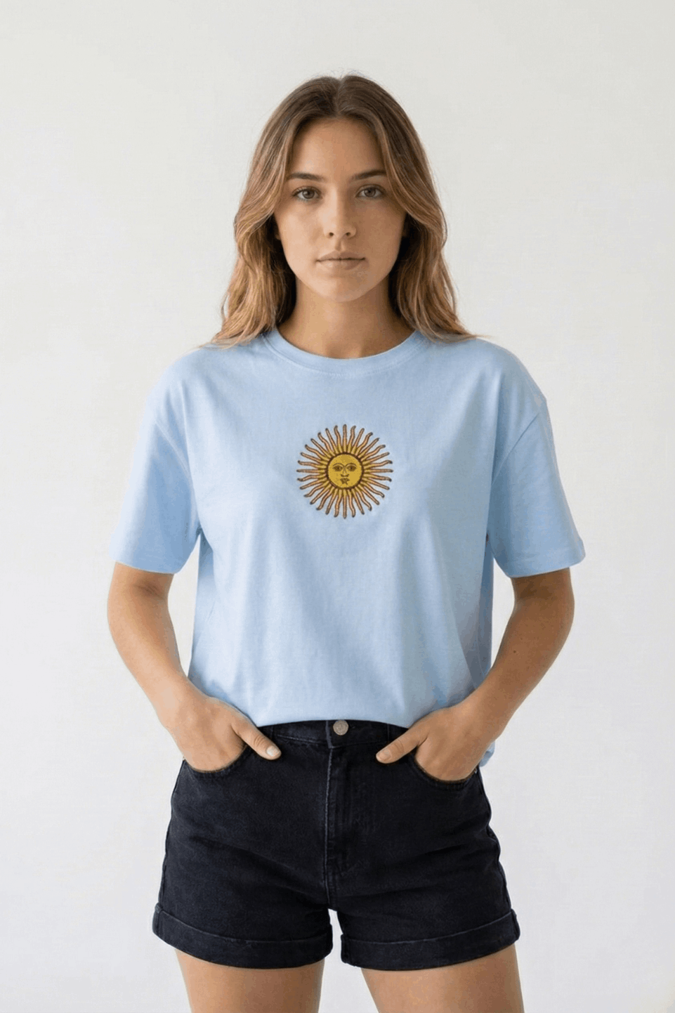 Remera Boxy Algodon Jersey 24/1 Sol De Mayo Argentina En El Medio Bordado Mayo