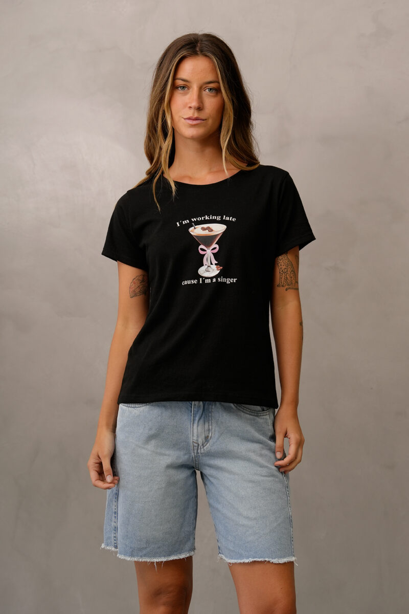 REMERA CORTA ALGODON JERSEY PEINADO ESTAMPA CAPRI