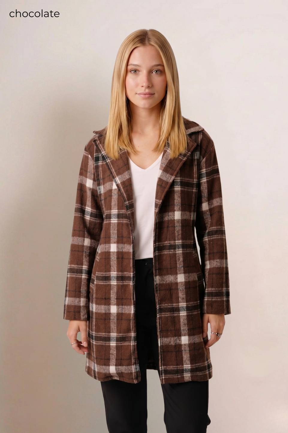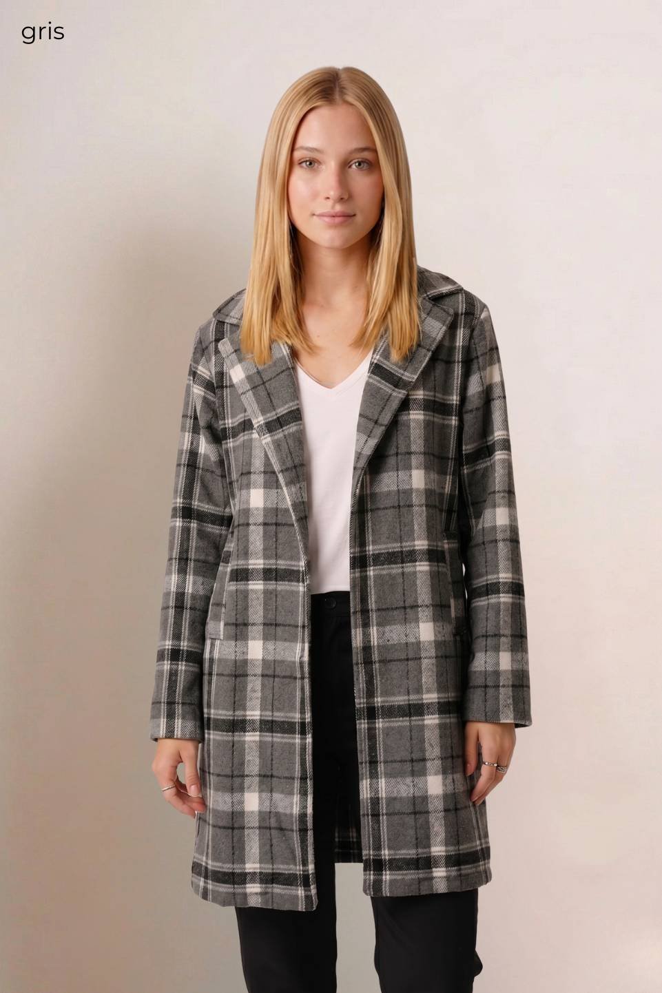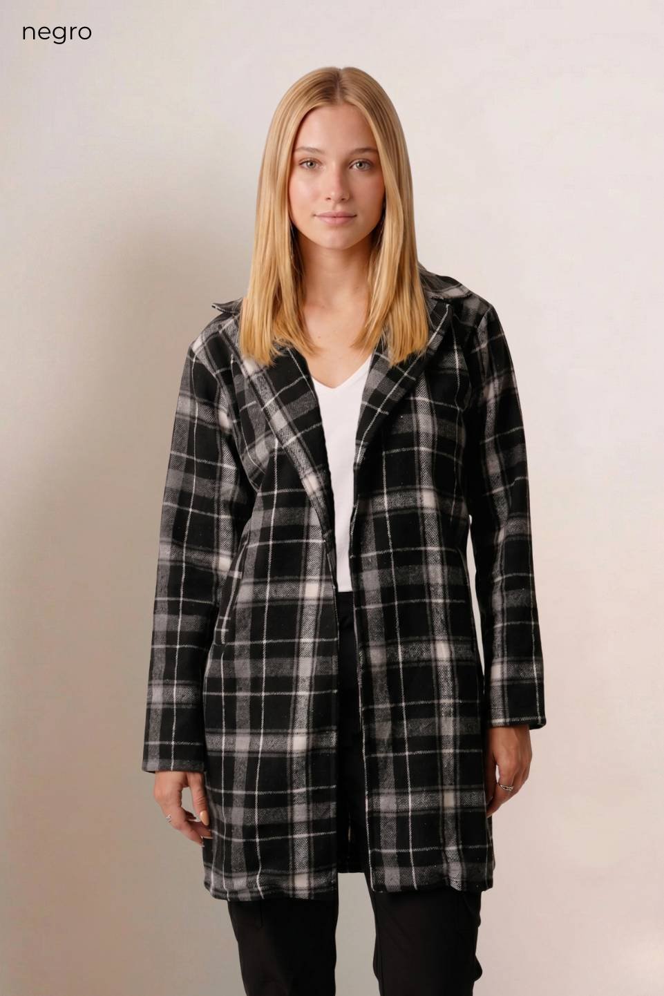 Saco Largo Paño Estampado Cuadrille Sin Botones «CODY»