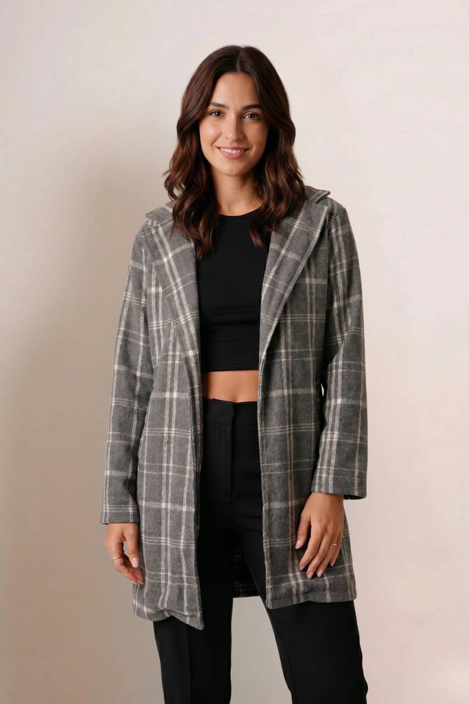 Saco Largo Paño Estampado Cuadrille Sin Botones «YURA»